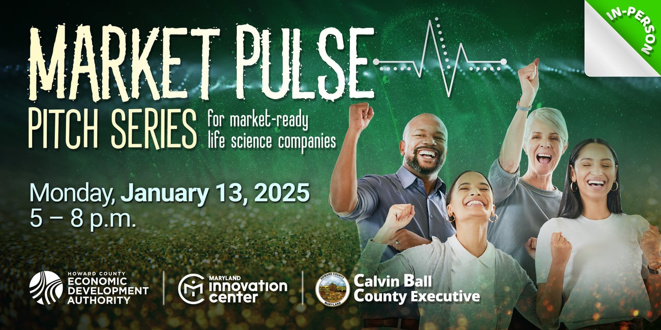 The Market Pulse Pitch Series is more than a showcase; it’s an exclusive gathering of trailblazers shaping the future of healthcare and technology. Investors, life science and health tech companies and community partners will converge for an evening of dynamic pitches, strategic networking and powerful collaborations. A distinguished panel of judges from MD Commerce, Fulton Bank, JLABS and Johns Hopkins Howard County Medical Center will lend their expertise to evaluate the pitches and spotlight the most innovative solutions. Attendees will also enjoy complimentary food and beverages, making it easy to connect in a relaxed yet professional atmosphere.