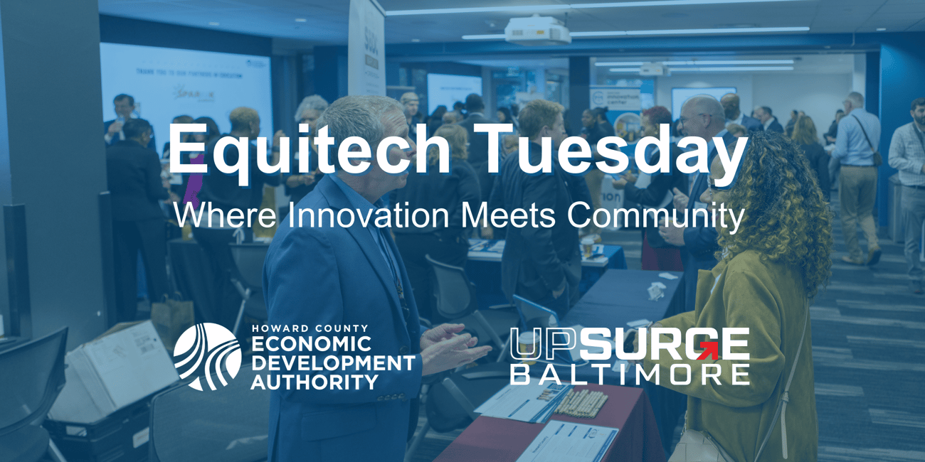 Equitech Tuesday is a weekly gathering of innovators, founders and talent, showcasing Greater Baltimore’s dynamic tech and innovation community. We’re proud to partner with UpSurge to bring this event to Howard County on January 21st! This rotating event travels across the region, connecting innovators and expanding collaboration opportunities.