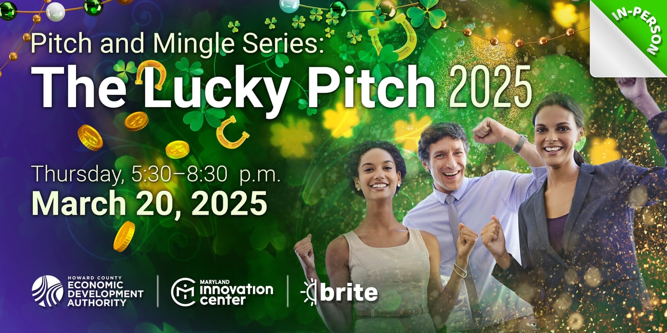 Don’t miss Pitch & Mingle: The Lucky Pitch on Thursday, March 20, 2025, at the Maryland Innovation Center—an evening where big ideas, great connections and incredible food and drinks come together.