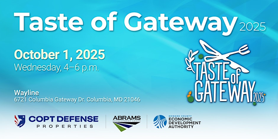 We’re excited to partner with COPT Defense Properties for this year’s signature Taste of Gateway event under the tent. This celebration brings together professionals from across Columbia Gateway’s innovation district for an evening of networking, food and community.