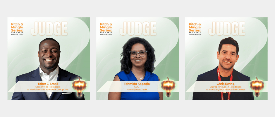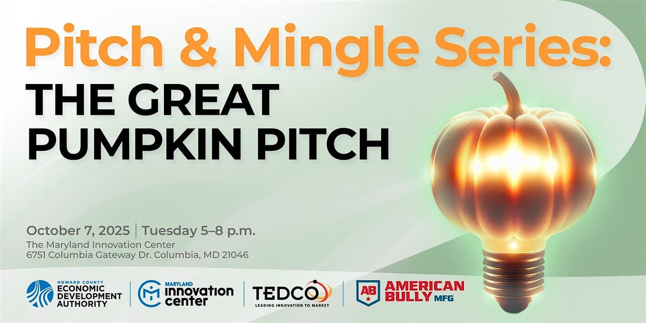 At Pumpkin Pitch 2025, five incredible startups will pitch their ideas live, competing for $10,000 in prizes. Join us on Tuesday, October 7, from 5–8 p.m. at the Maryland Innovation Center for one of the most exciting nights of innovation in Central Maryland.