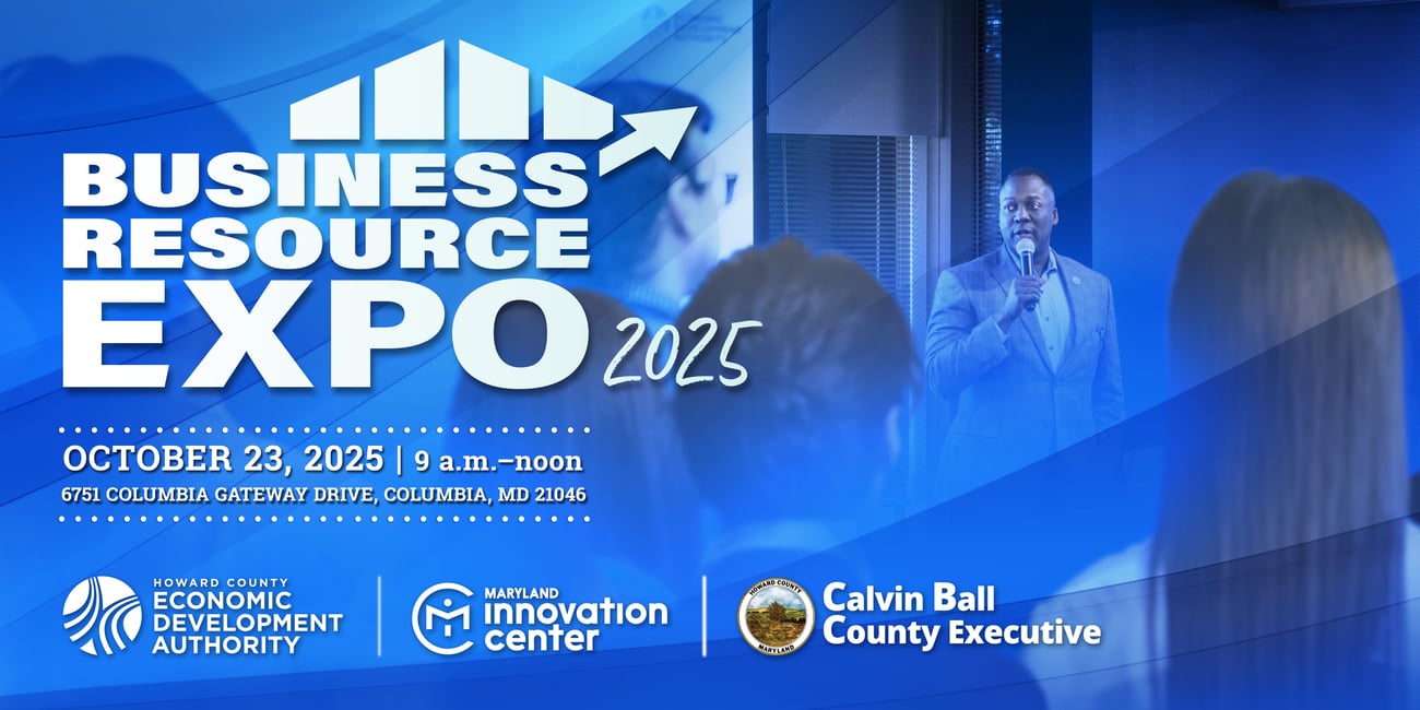 Join us for the Howard County Business Resource Expo on October 23, 2025, 9:00 a.m.–12:00 p.m. at the Maryland Innovation Center.